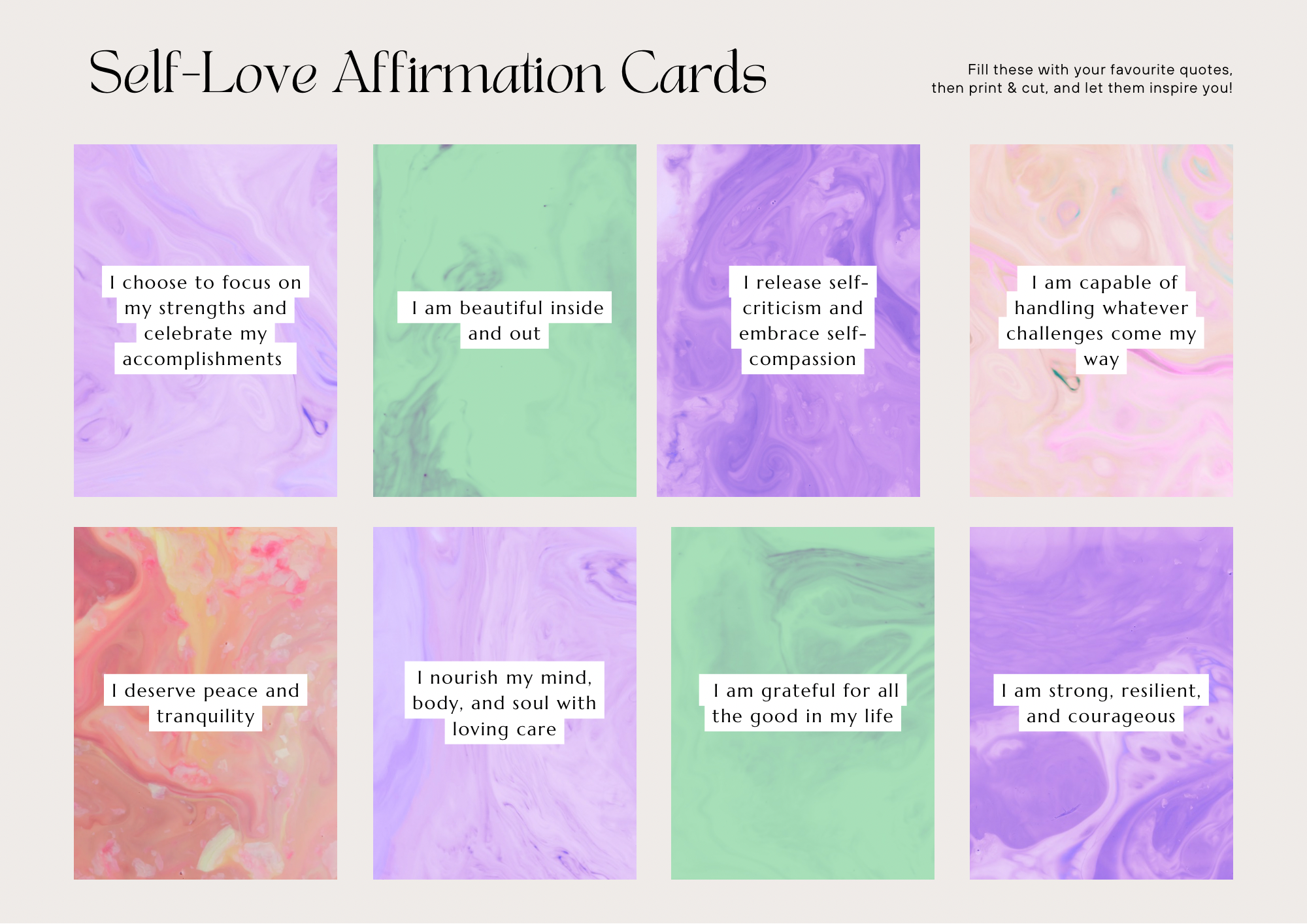 Affirmations have always been a staple in helping me believe in myself. I have these affirmations here for you to say to yourself. Write them down and put them on your mirror, repeating them to yourself to manifest the life you want.